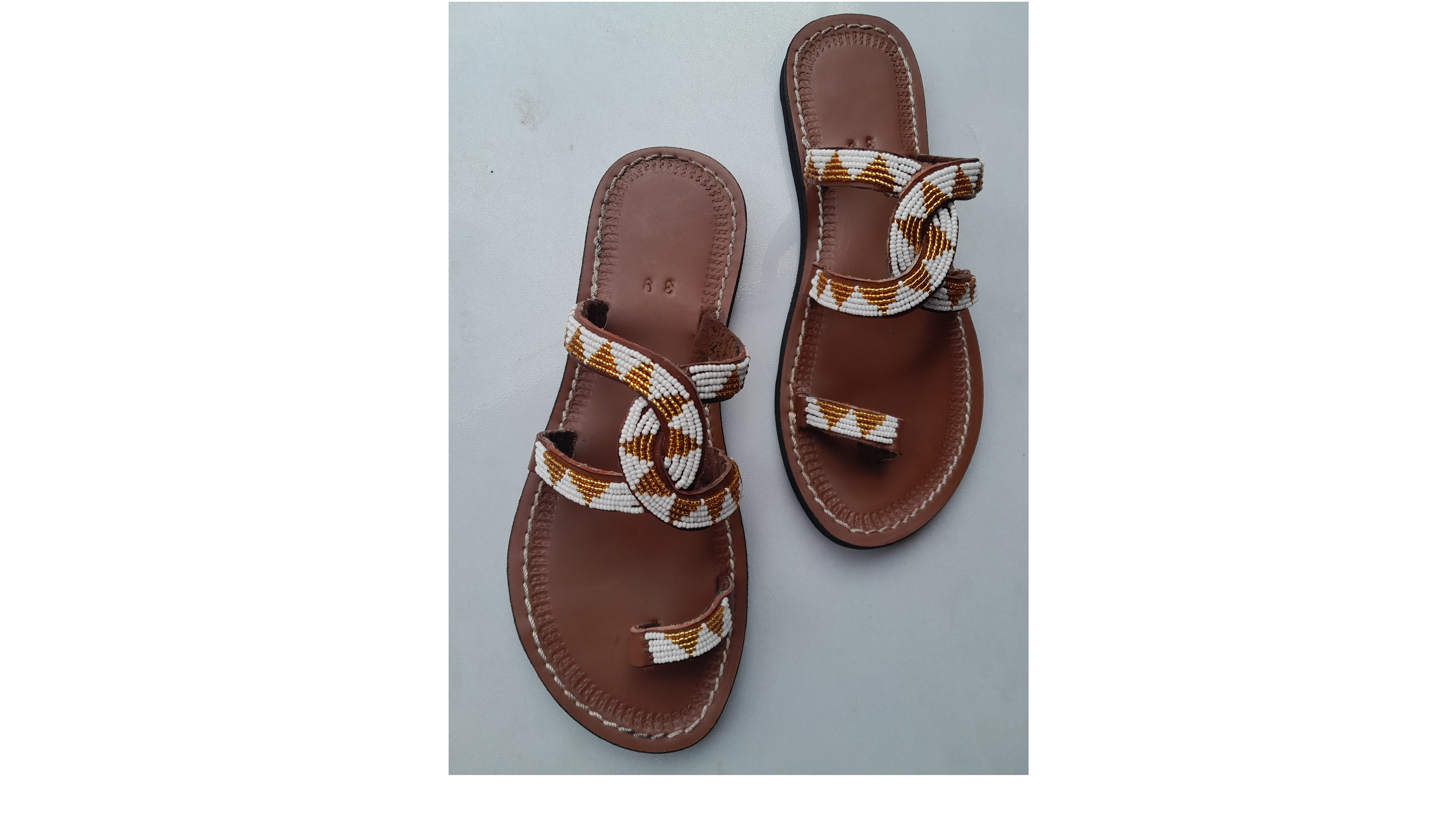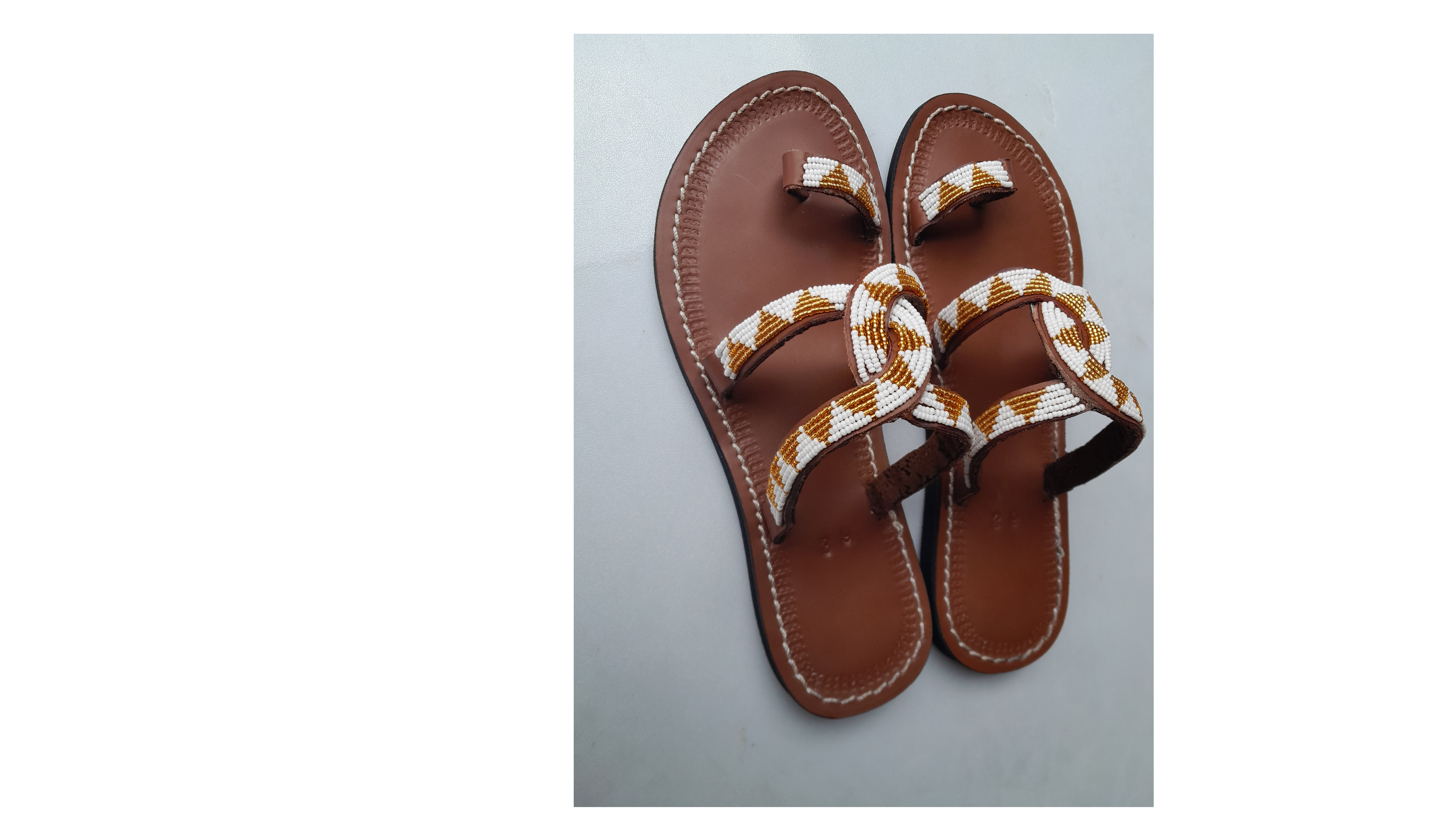 This pair is done on pure leather materials, strand beads, and rubber sole, the sandals are long lasting, worth every shilling, we make them on order customized to your fitting whether0 wide/slender or normal fitting.